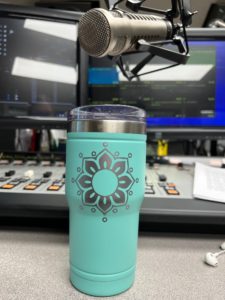 I got this cup at a garage sale for $1. I’ve deemed it the perfect cup. Functional and fashionable. It’s this green-blue, light teal color. That happens to be ‘my color’. When I wear this color, I always get compliments…even from Thomas Rhett. Items in my bathroom are this color. I have a picture in my house that is this color.